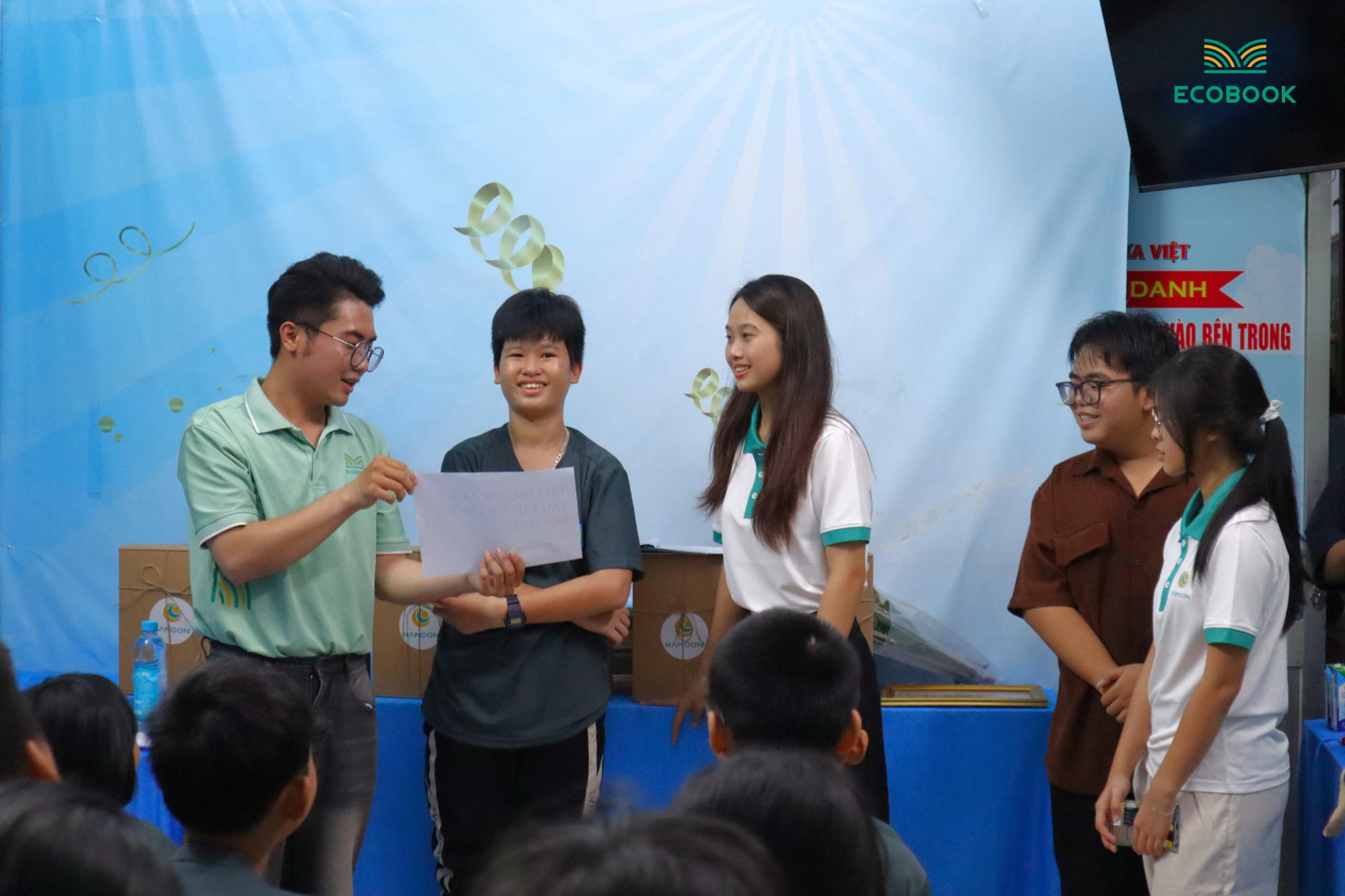 Khi đến thăm lớp học tình thương Lửa Việt, ECOBOOK và HAMOON đã gửi tặng Quý Thầy Cô những món quà tri ân, bày tỏ lòng biết ơn và tiếp thêm động lực để Thầy Cô giáo tiếp tục trao đi yêu thương và truyền đạt những kiến thức bổ ích đến các bạn học sinh, để tri thức tiếp tục được chia sẻ và những nụ cười hạnh phúc của các em nhỏ sẽ rạng rỡ nở trên môi.